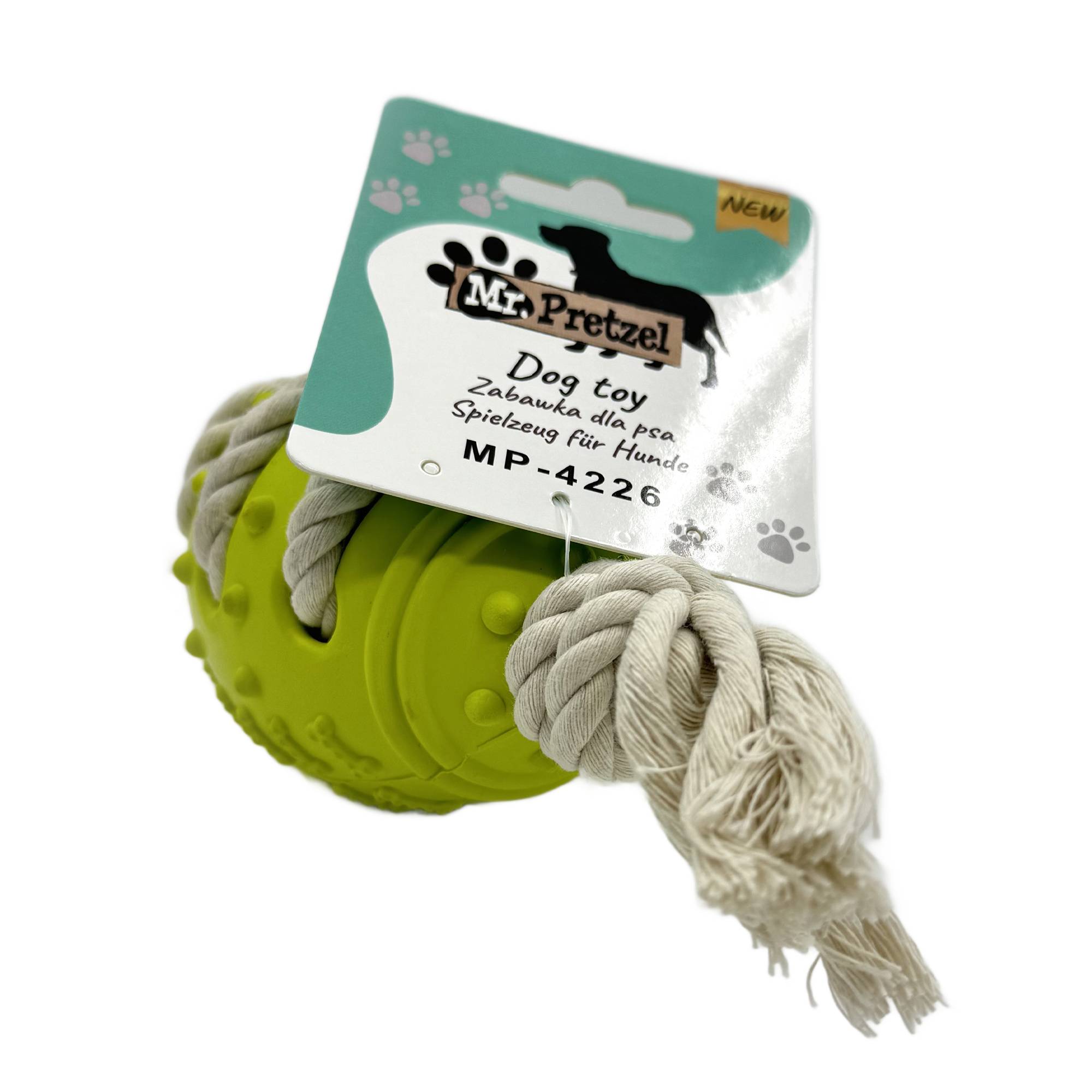 Zamów już dziś Mr. Pretzel Gryzak gumowy na sznurku dla psa Rugby i spraw, by Twój pies cieszył się każdą chwilą spędzoną na zabawie!